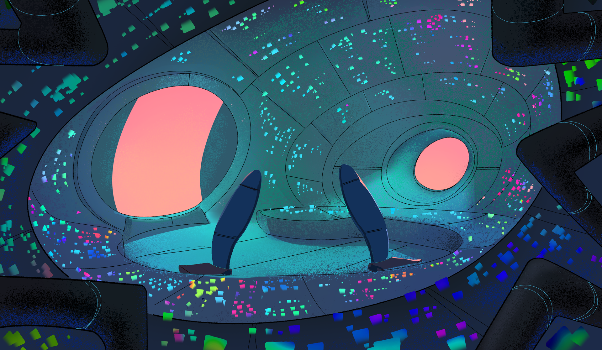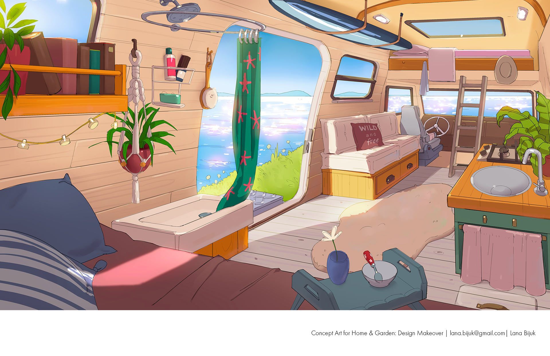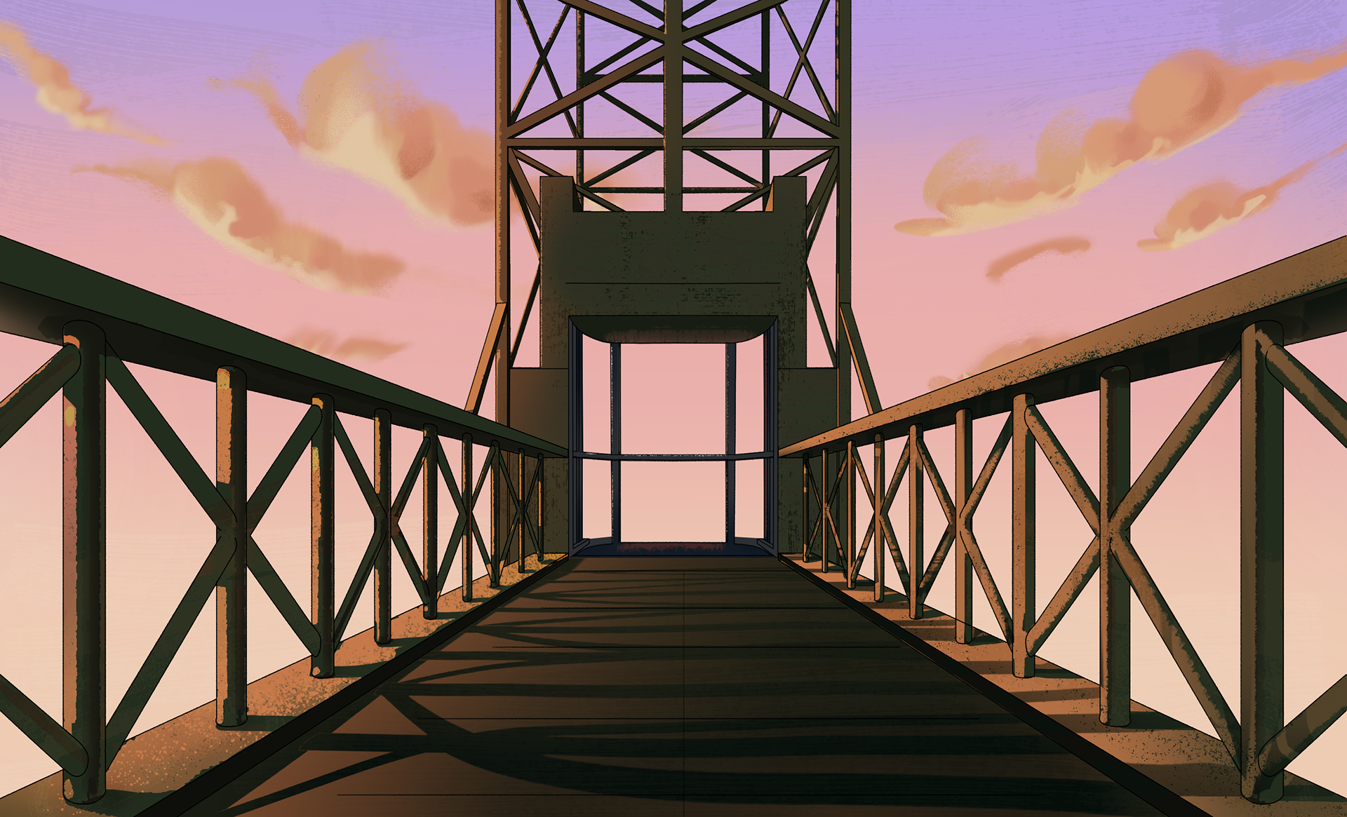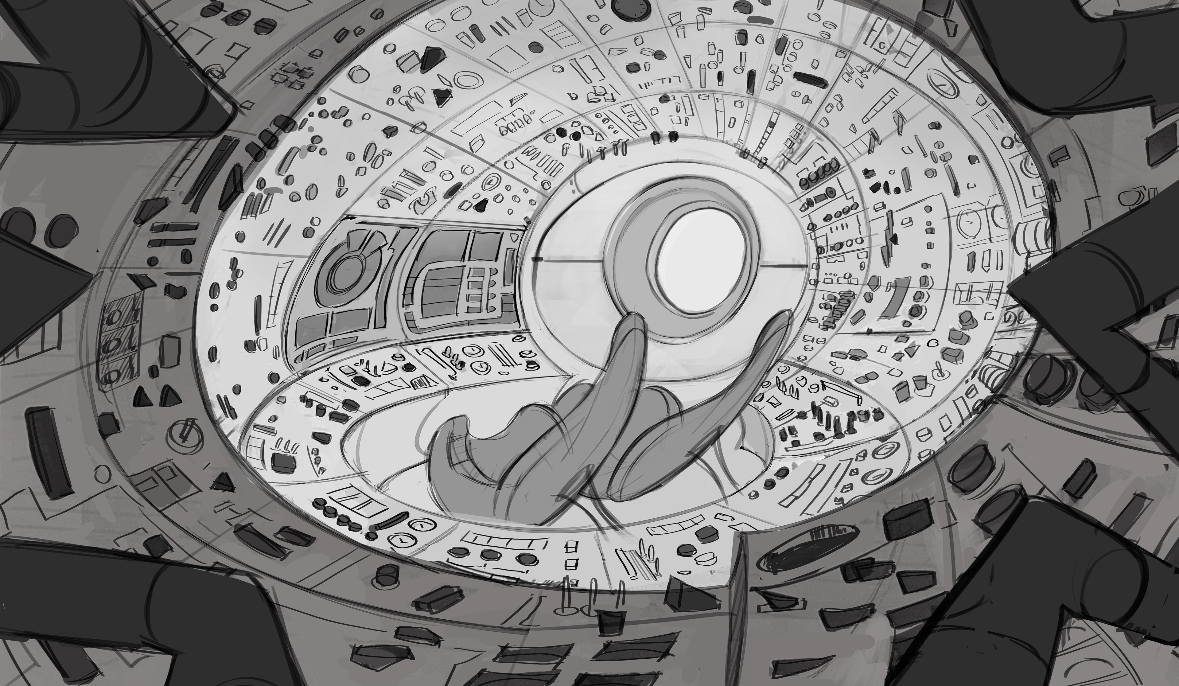 I painted these layouts referencing our storyboard panels (by Emily Habraken, Lucy Belon Murphy, Keane Lee) and color keys made by Alexa Chemikos. As a visual development lead one of my tasks was defining the painting style for our layouts.